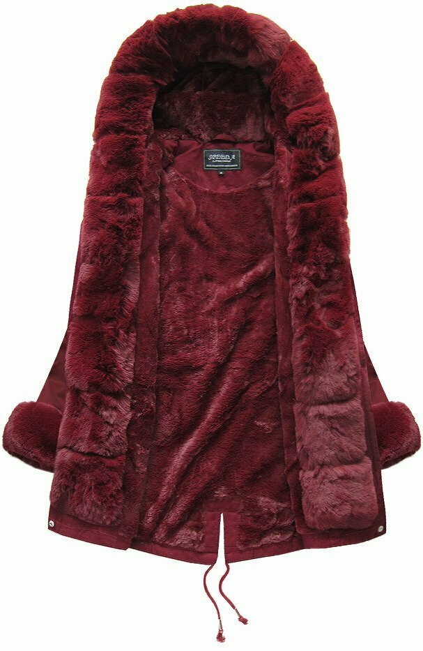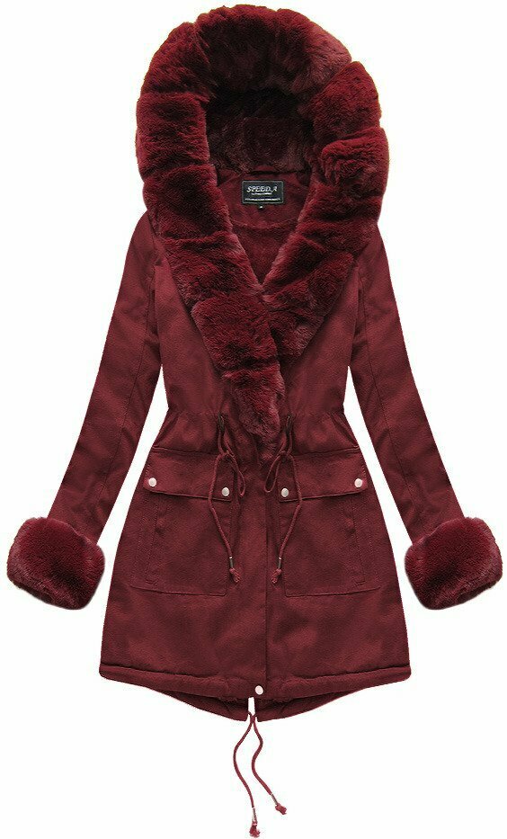 Bavlněná dámská zimní bunda parka ve vínové bordó barvě s kožešinou (xw801-3x)