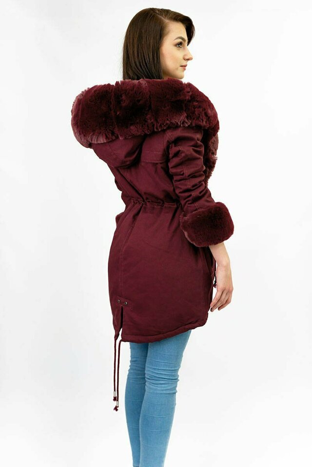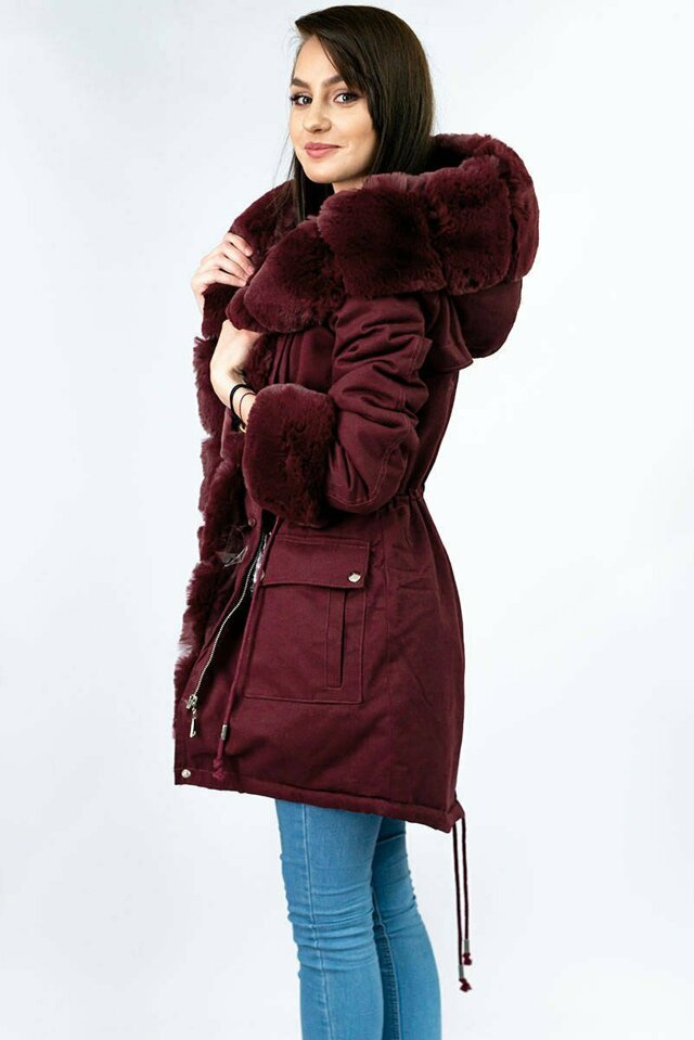 Bavlněná bunda parka ve vínové bordó barvě s kožešinou (xw805x) i