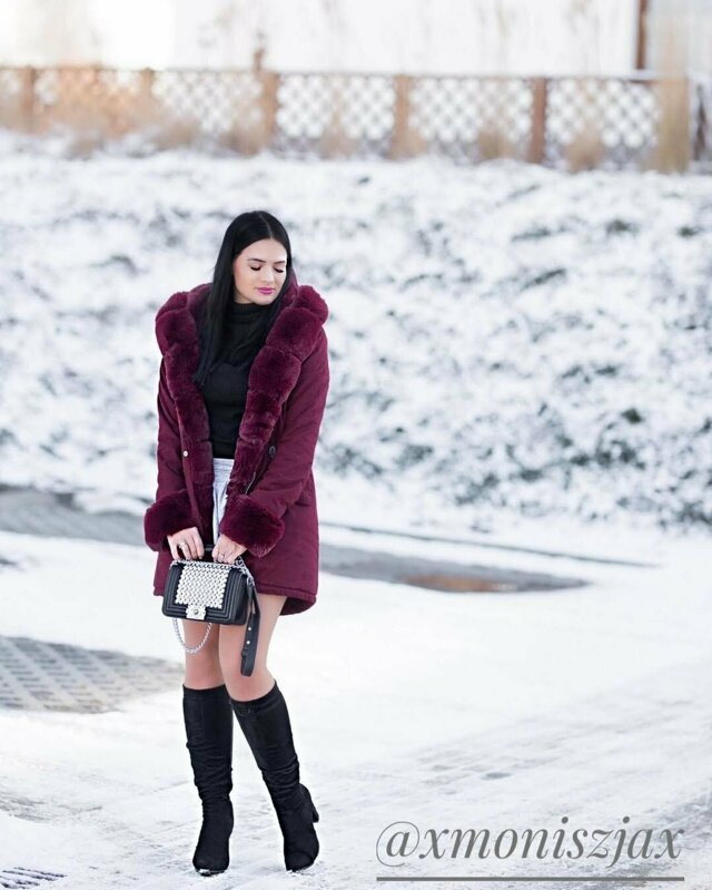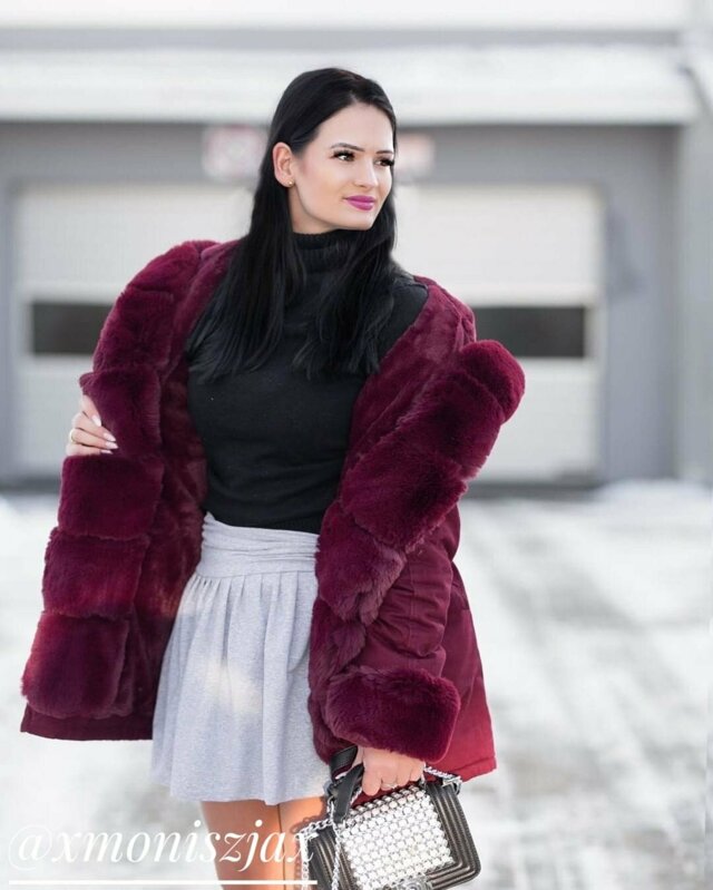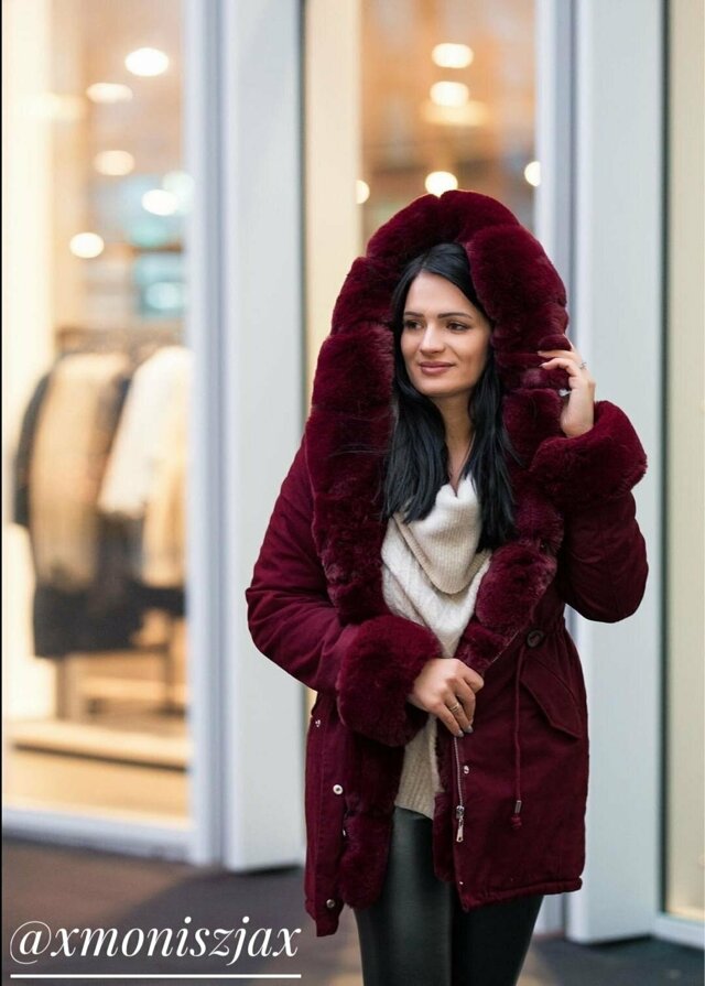 Bavlněná dámská zimní bunda parka ve vínové bordó barvě s kožešinou (xw801-3x)