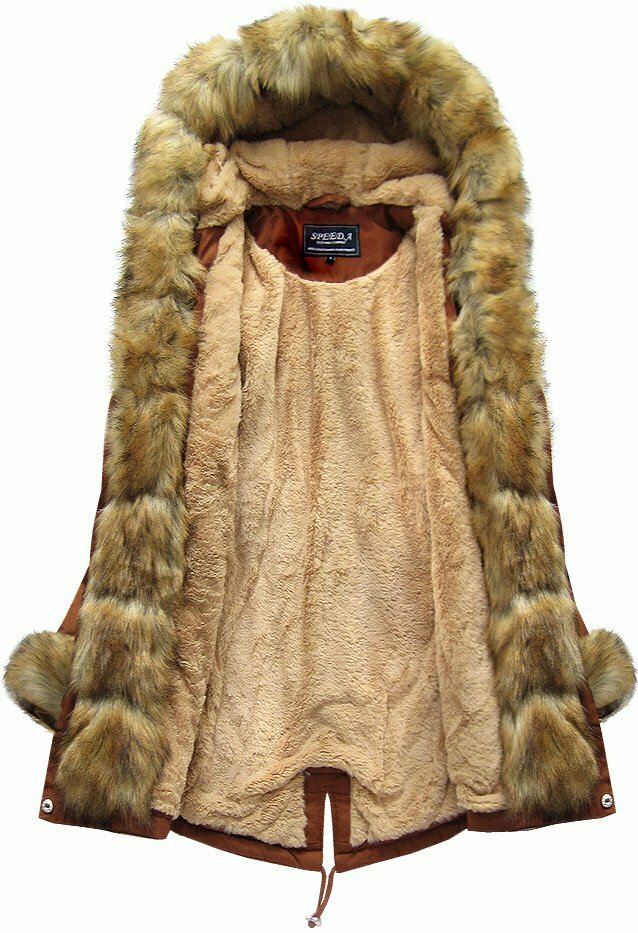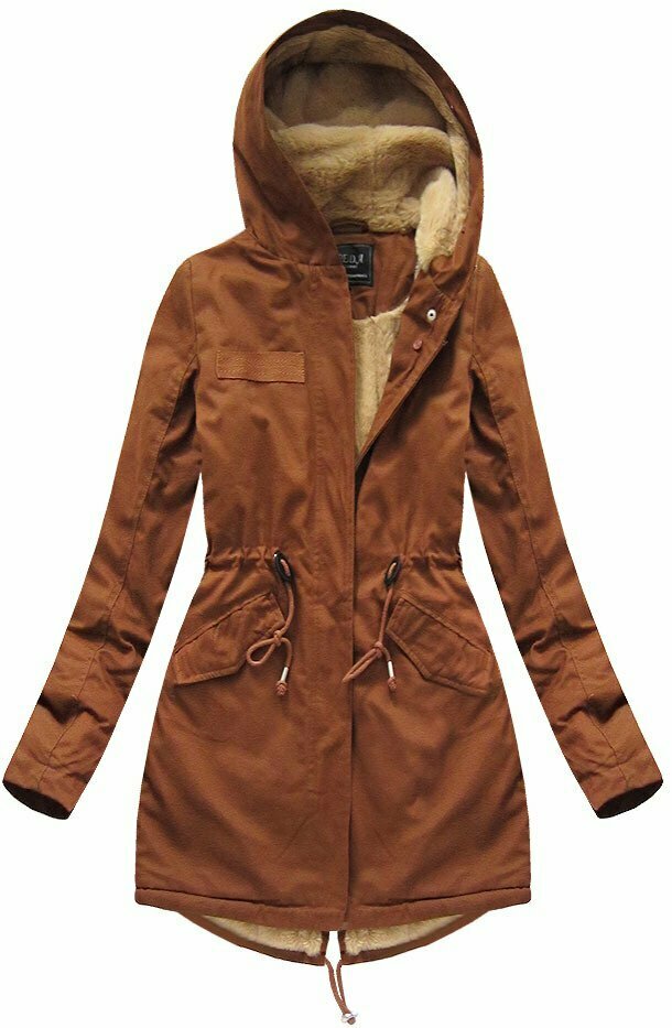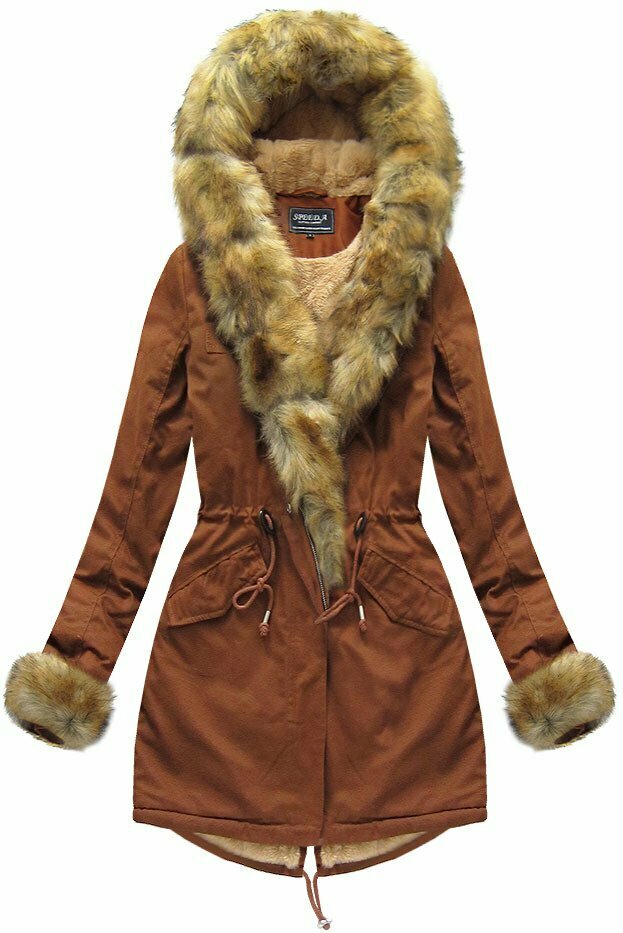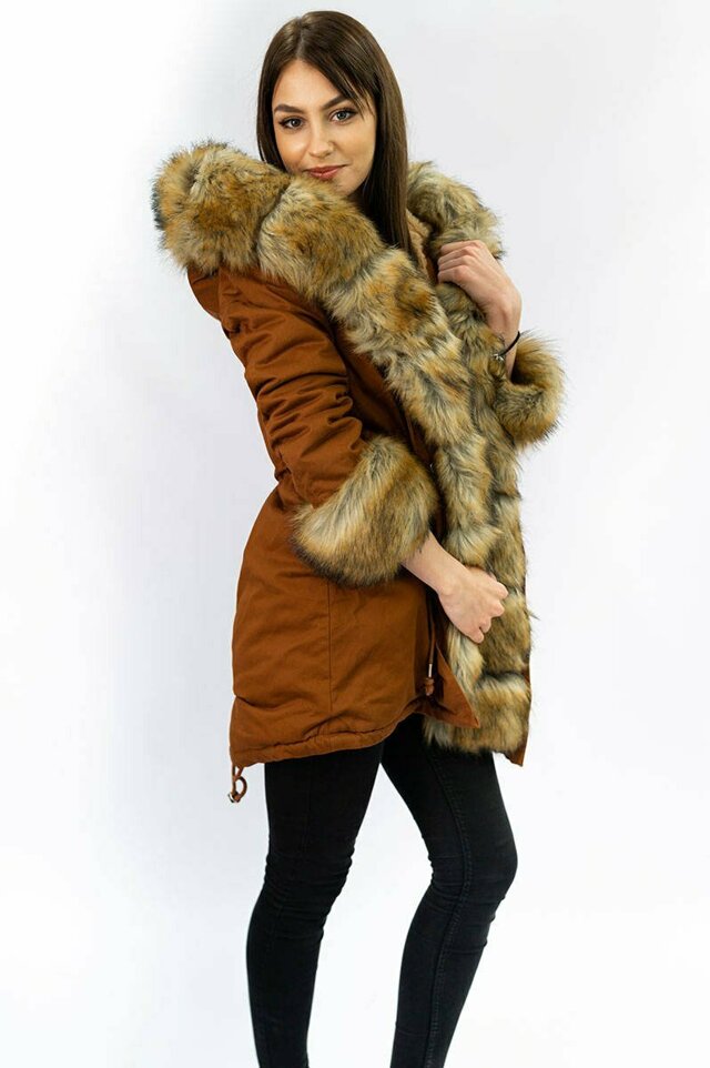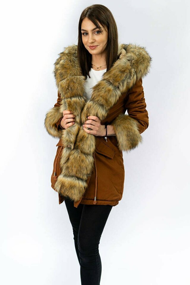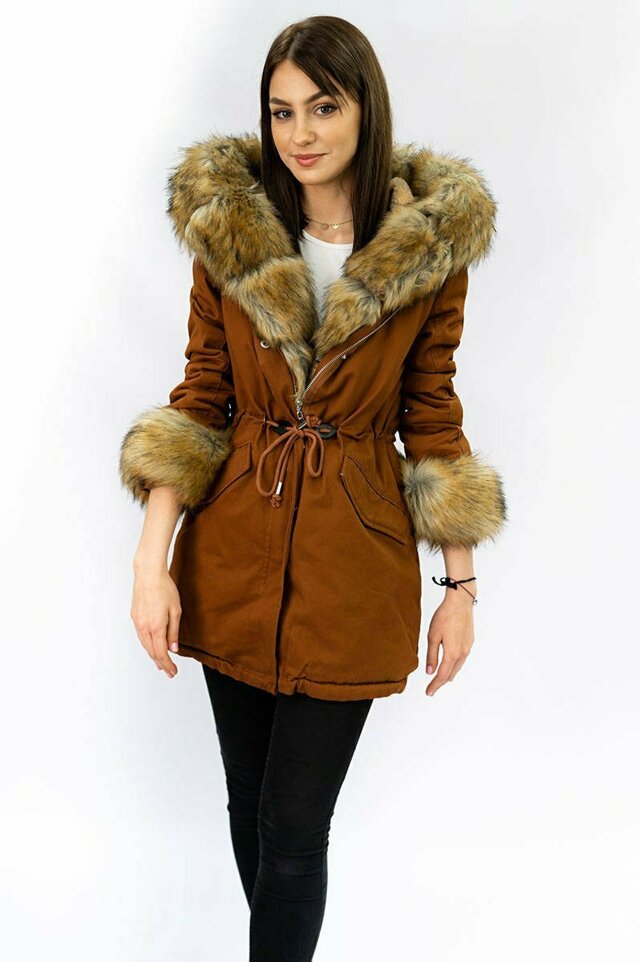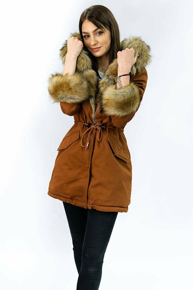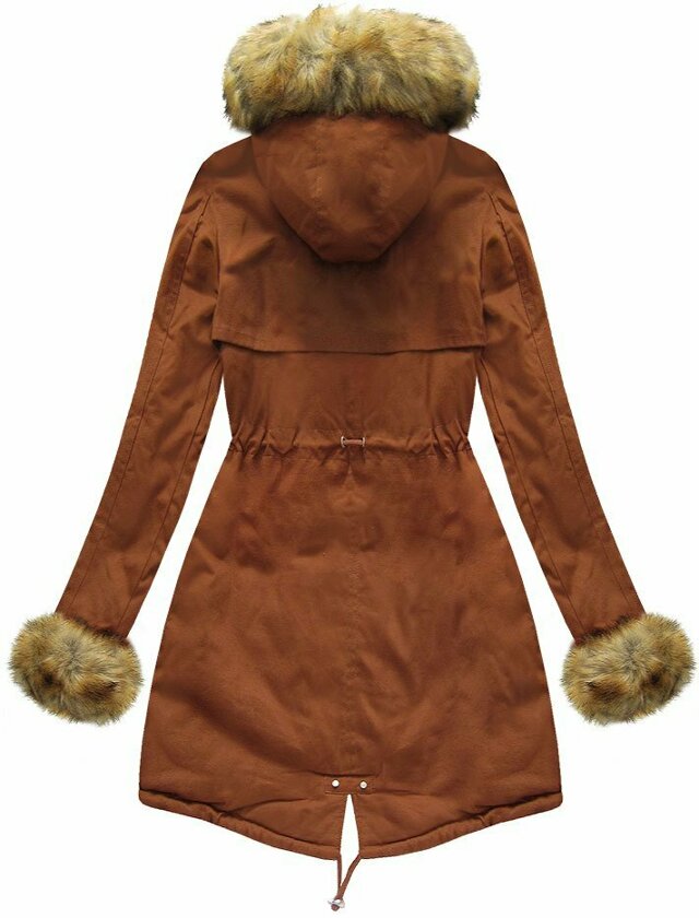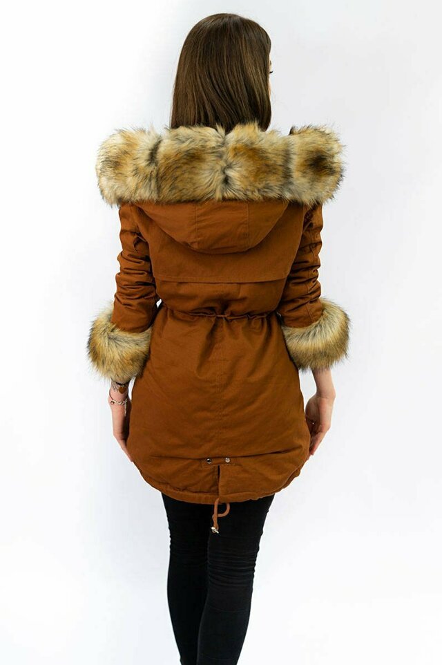 Bavlněná dámská zimní bunda parka v karamelové barvě s kožešinou (xw793x) i