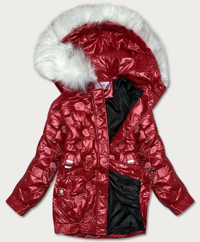 Červená dámská bunda s reliéfními vytlačovanými vzory (8261) i