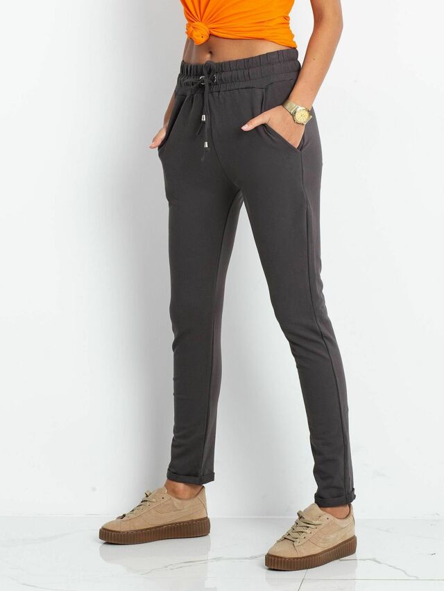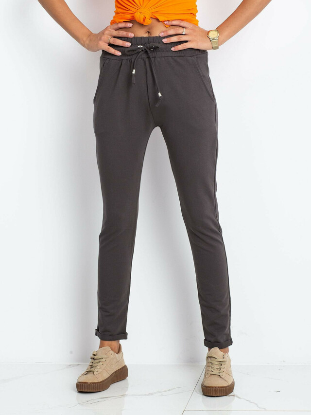 Tmavě khaki bavlněné tepláky.