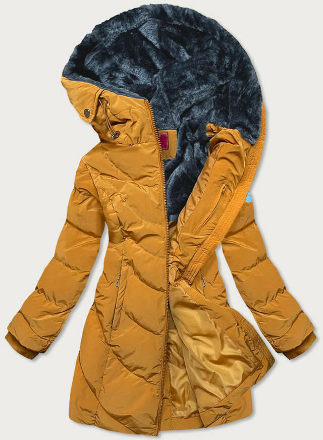 Žlutá dámská zimní bunda s kapucí (m-21306) i